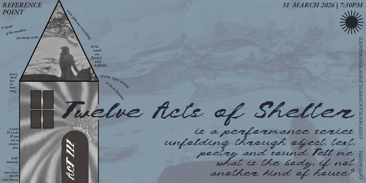 12 Acts of Shelter is a year-long monthly performance series unfolding through object, text, and sound: a small house under light, poetry and music.