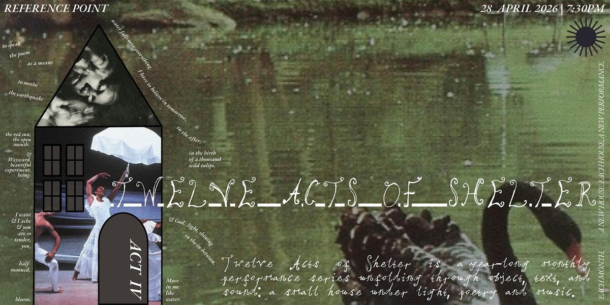 12 Acts of Shelter is a year-long monthly performance series unfolding through object, text, and sound: a small house under light, poetry and music.