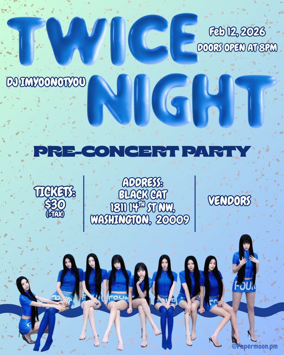 ? Step into a world of wonder at Twice Night K-Pop Dance Party, where extraordinary moments await! ?️ Located at Black Cat - DC in dynamic Washington, DC, this event will become the talk of the town. ? Join us on February 11th, 2026 at 07:00 PM for a celebration that defies the ordinary. ✨ This curated experience brings together the best of entertainment, culture, and community spirit. Every detail has been thoughtfully planned to ensure an unforgettable experience for all our guests. ? Take advantage of this opportunity to be part of something special. ? Early registration is recommended as space is limited!http://maps.seatics.com/GeneralAdmissionEvent_2018-10-03_1713_SVGC_tn.gif