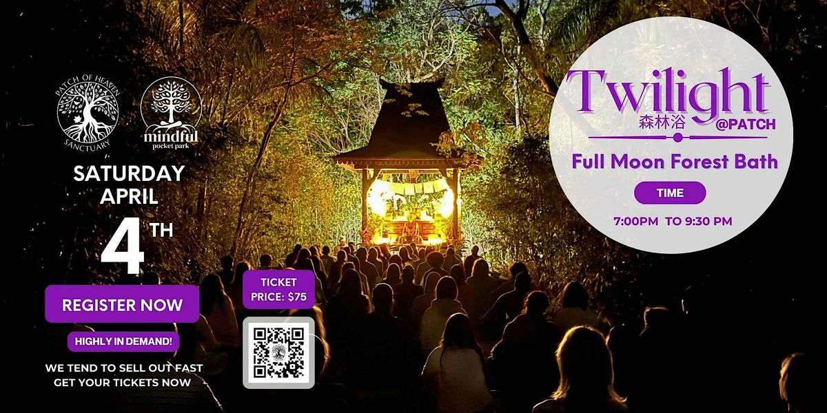 We invite you to walk “in the park after dark” under the glowing gaze of April's Pink Moon. As twilight descends, we’ll step silently into the 124-year-old forest at Patch of Heaven Sanctuary—a space where presence, not performance, is what’s asked of you.