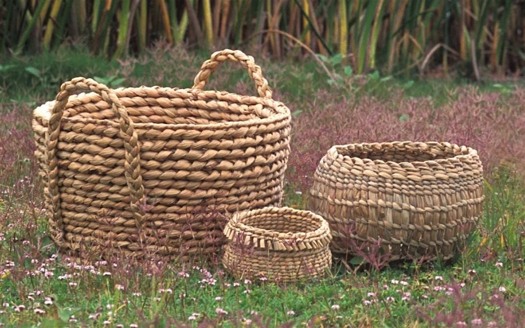 Each student will make a small, twined basket, using rush (Juncus) grown in the Basketry Garden at Marin Art and Garden Center. This small native rush commonly grows in damp meadows and ditches in Marin, and is also available in nurseries.