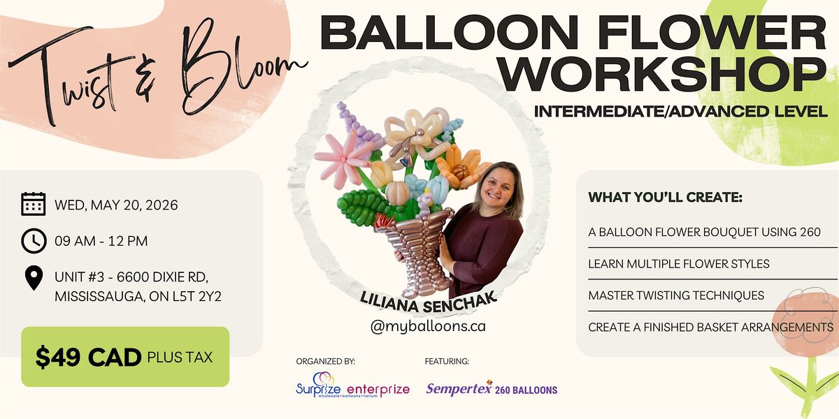 Join us for a hands-on workshop where you’ll learn how to transform balloons into beautiful floral arrangements using professional twisting techniques.