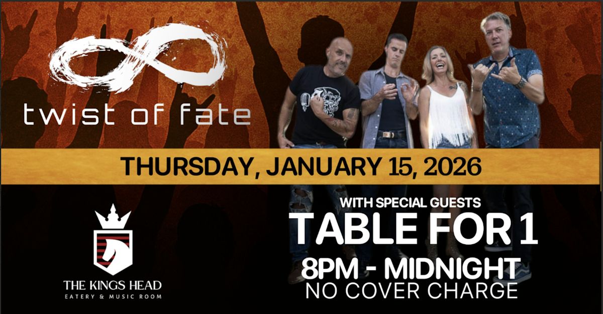 Twist of Fate is excited to share the night with their special guests Table For 1 (https://www.facebook.com/theTablefor1)!