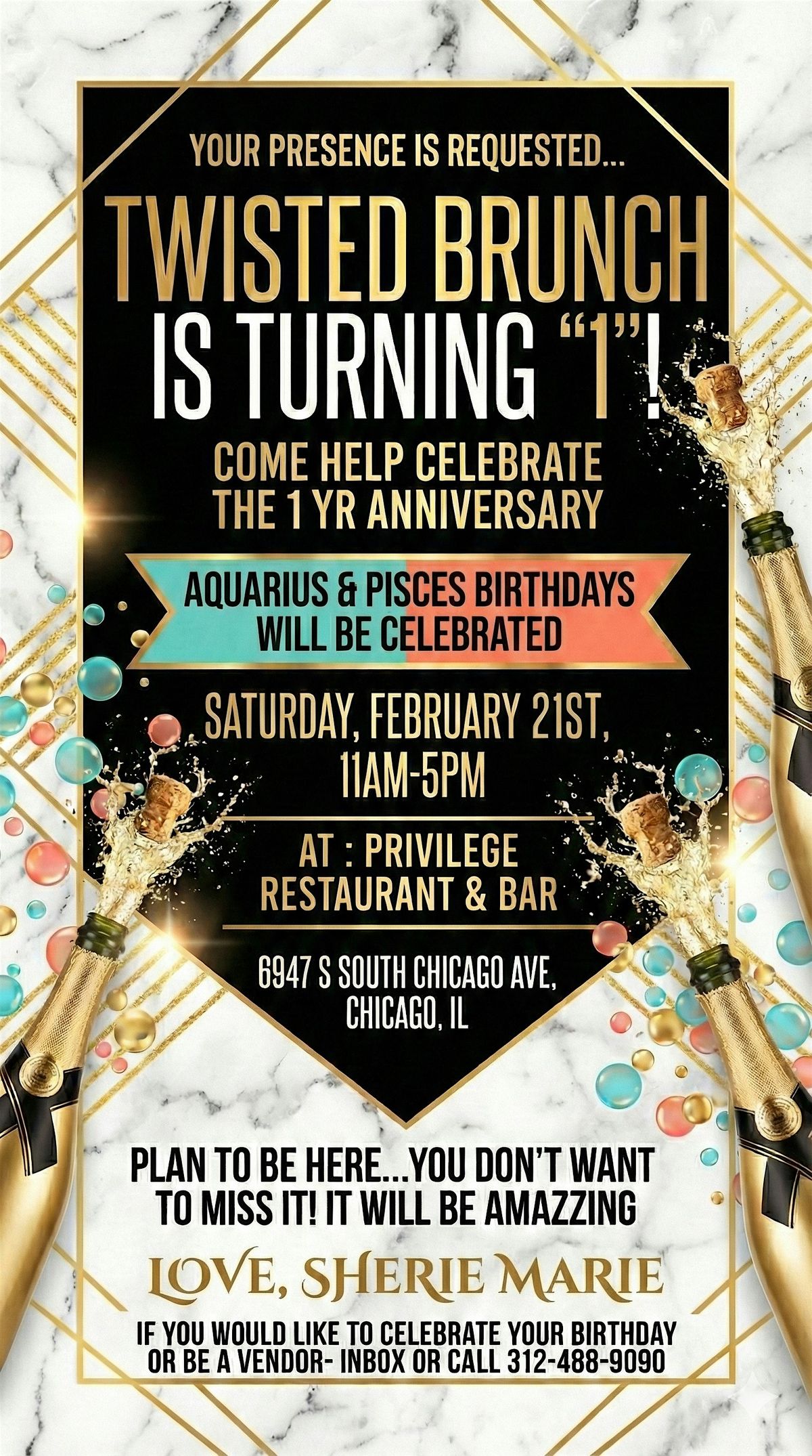 Come get TWISTED! It's a BRUNCH PARTY! Your Favorite Dishes, Mimosa Flights, DJ & Live Entertainment! Celebrate Your Special Day With US!