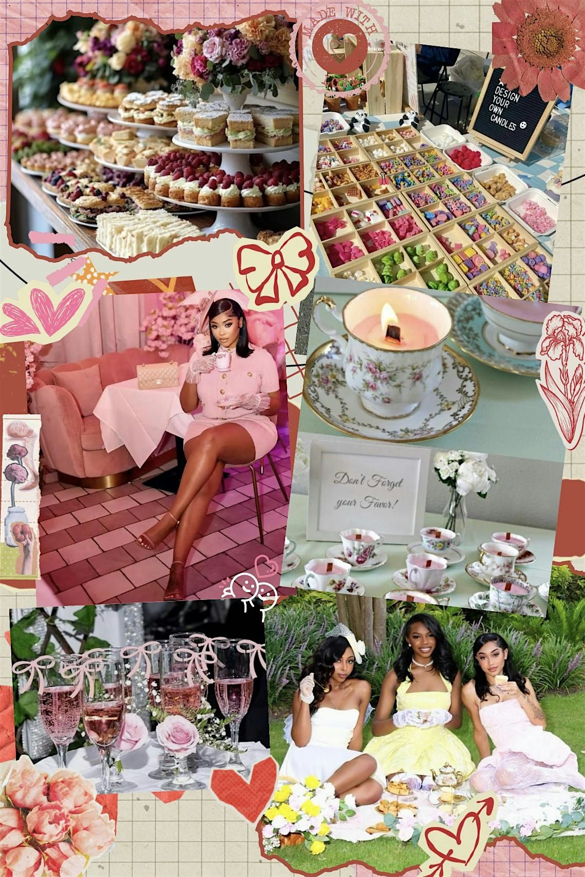 Grab your girls and dive into a world of twists and sips. There will be complimentary drinks given upon entry. We're playing games, giving away gifts, raffling amazing prizes, and singing r&b jams. We will be making our own candles and lasting memories to take home . Our DIY candle bar will also have several scents and decorations to create a custom 1 of 1 candle. There will be a variety of teas, desserts and yummy finger foods to enjoy. There will also be drinks, hookahs, and vendors available.