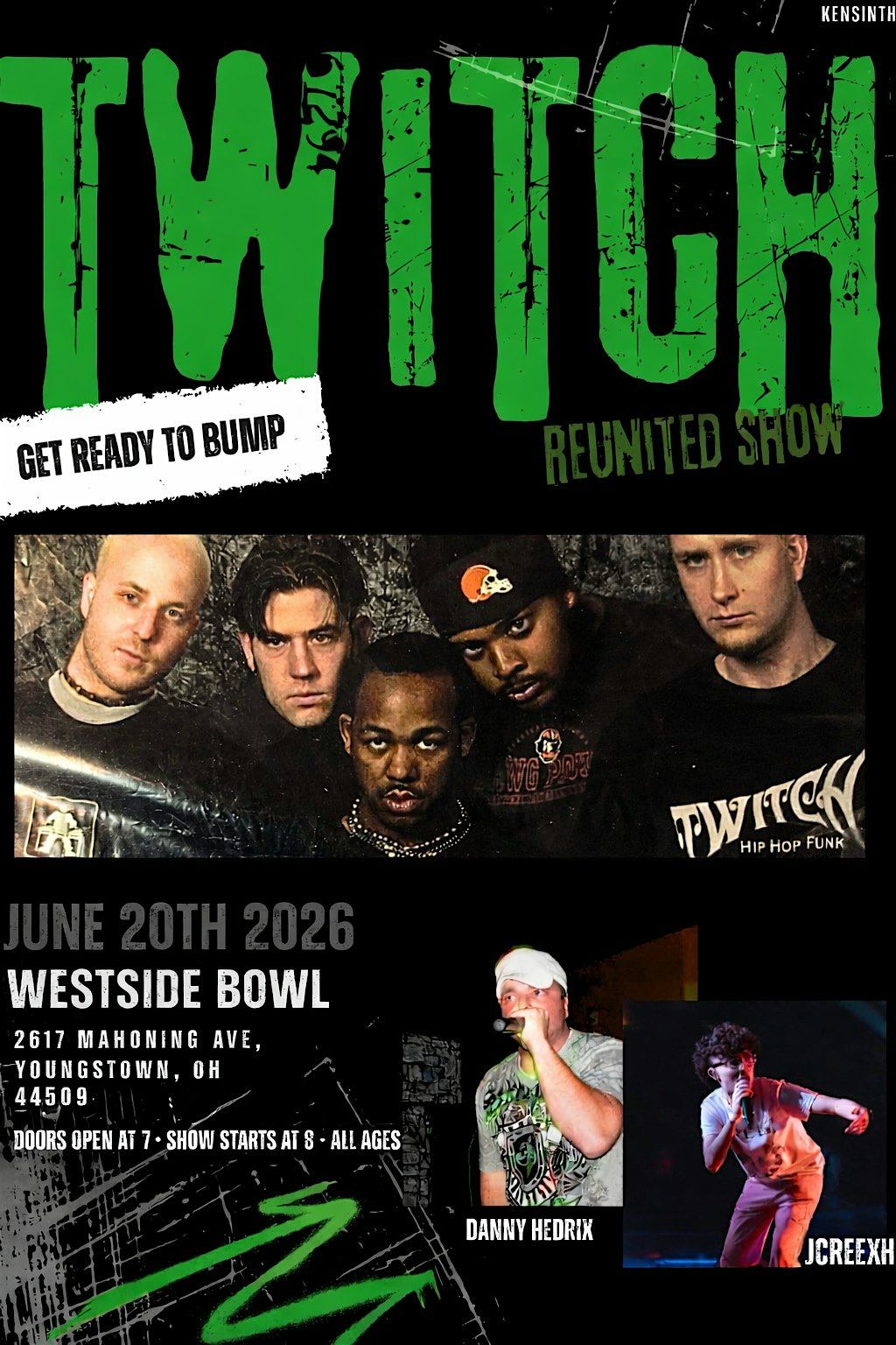 TWITCH is Reunited after not playing on stage together for 26 years 😲 Bringing it back to WESTSIDE BOWL!!!!! JUNE 20TH DOORS OPEN AT 7 PM SHOW STARTS AT 8PM!!!! Also on the bill making it BUMP....JCREEXH 🔥and Danny Hedrix!!!!! 🔥 All age show. A Night full of fun, dancing, and mosh pits!