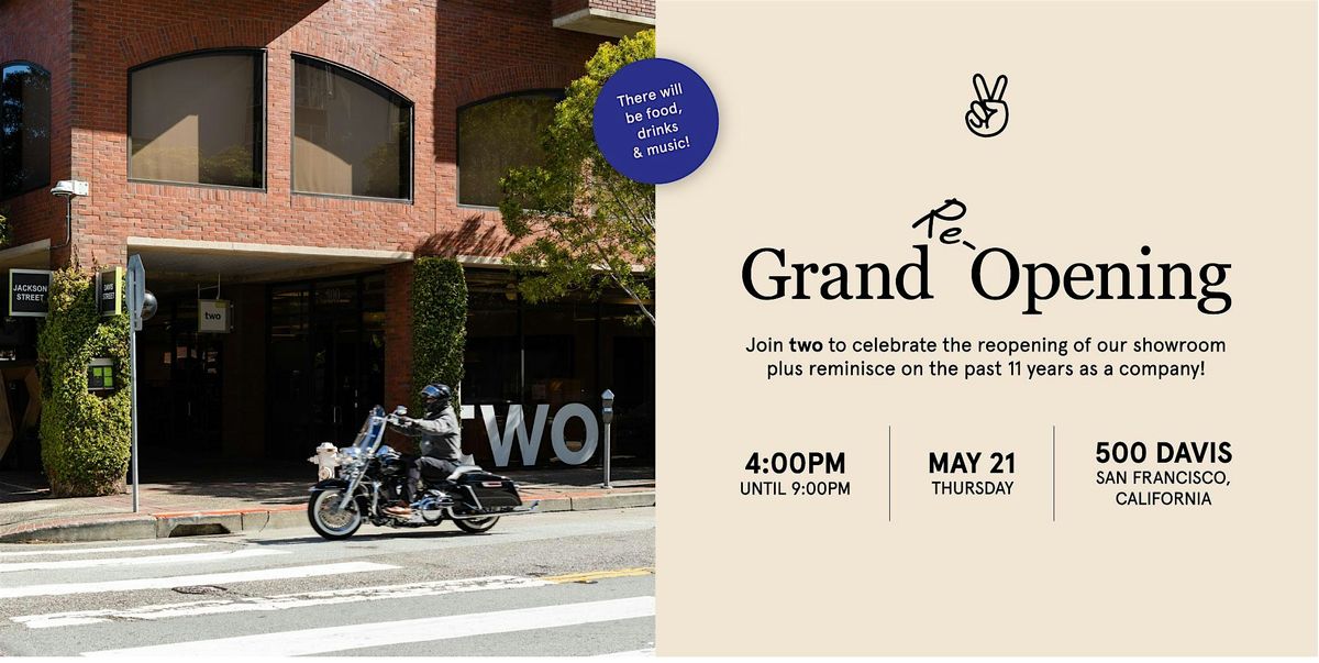 two's showroom renovation party is finally here. Eleven years of building something worth celebrating, and we want you in the room when we do. Swing by anytime during the event, grab a drink, enjoy the food, and let the music move you. Catch up with familiar faces from the industry or simply take it all in.