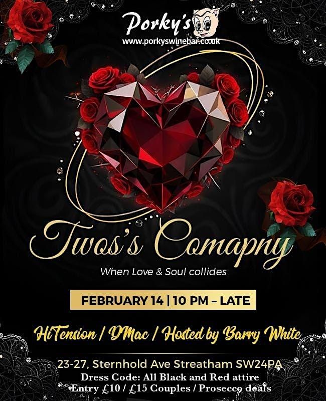 Welcome lovebirds! 💕 Ready for a romantic night out? Join us at Porky's Wine Bar for TWO'S COMPANY - VALENTINE SPECIAL on February 14, 2026 at 10:00 PM (Europe/London time). Get ready for an evening filled with love, laughter, and great wine. Let's make this Valentine's Day one to remember! See you there! 🍷🌹