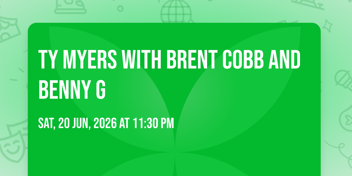 π Location: 40.3351, -75.9233β¨ Enter a world of endless possibilities at Ty Myers with Brent Cobb and Benny G, where every moment tells a story! ποΈ The stunning Santander Arena in vibrant Reading, PA transforms into a realm of wonder on June 20th, 2026 at 11:30 PM. π They have crafted an experience that goes beyond the ordinary, combining elements of surprise, delight, and pure entertainment. Every detail has been thoughtfully considered to ensure your journey with us is nothing short of extraordinary. π― Join fellow adventure seekers and memory makers in this celebration of imagination and innovation. π Reserve your spot today and be part of something truly special!