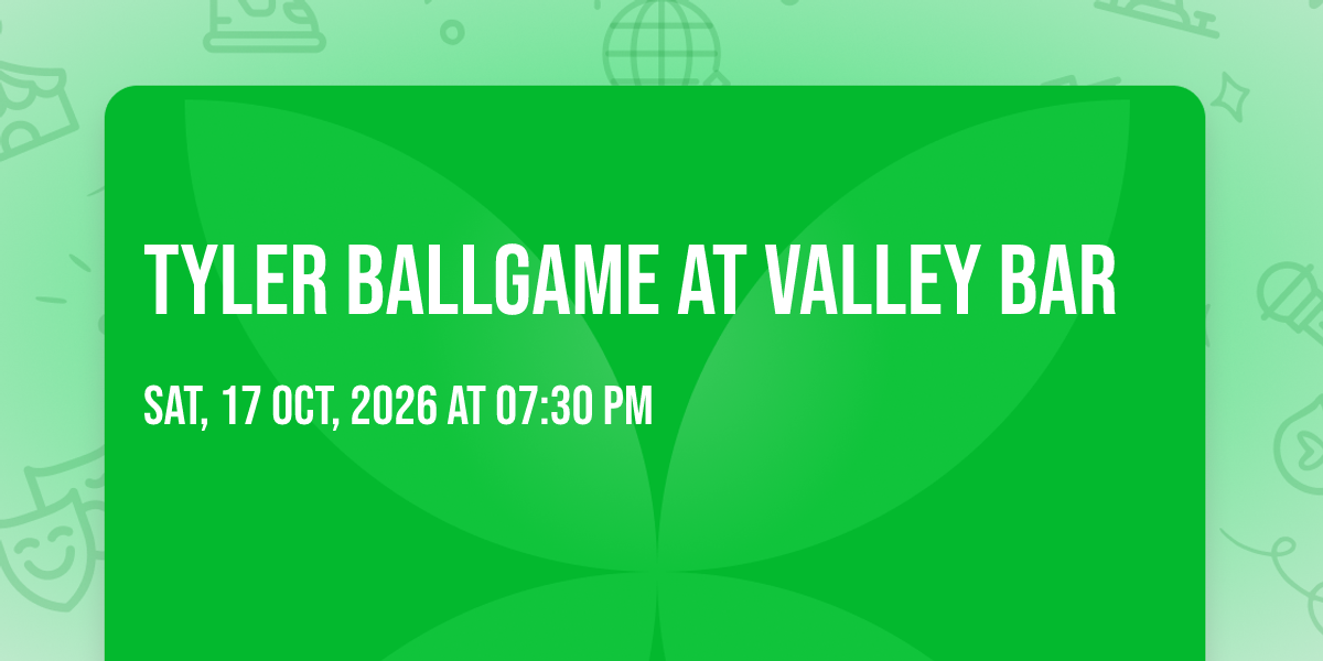 ✨ Enter a world of endless possibilities at Tyler Ballgame at Valley Bar, where every moment tells a story! 🏛️ The stunning Valley Bar in vibrant Phoenix, AZ transforms into a realm of wonder on October 17th, 2026 at 07:30 PM. 🌟 They have crafted an experience that goes beyond the ordinary, combining elements of surprise, delight, and pure entertainment. Every detail has been thoughtfully considered to ensure your journey with us is nothing short of extraordinary. 🎯 Join fellow adventure seekers and memory makers in this celebration of imagination and innovation. 🎊 Reserve your spot today and be part of something truly special!