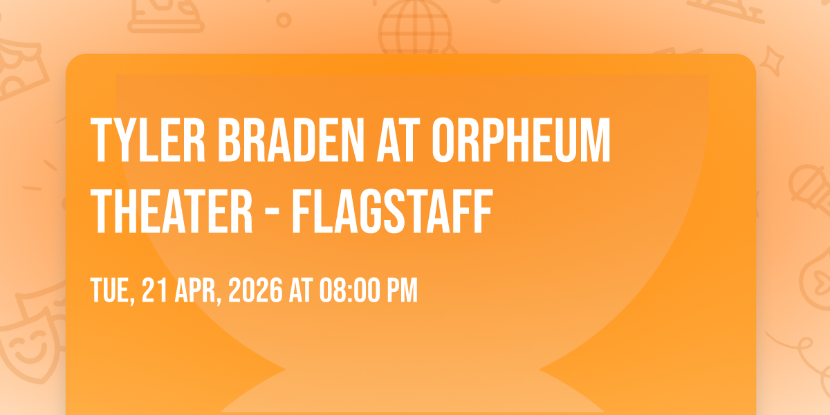 ✨ Embark on an extraordinary journey at Tyler Braden at Orpheum Theater - Flagstaff, where every moment promises to be unforgettable! 🌟 Imagine of transforming Orpheum Theater - Flagstaff in the heart of Flagstaff, AZ into a realm of endless possibilities. 📅 Join us on April 21st, 2026 at 08:00 PM for an experience that will challenge your imagination and exceed your expectations. 🎯 This carefully curated event combines the finest elements of entertainment, innovation, and community spirit. Whether you're an adventure seeker, culture enthusiast, or someone looking for unique experiences, this event offers something special for everyone. 🎊 Don't miss this chance to be part of something extraordinary!