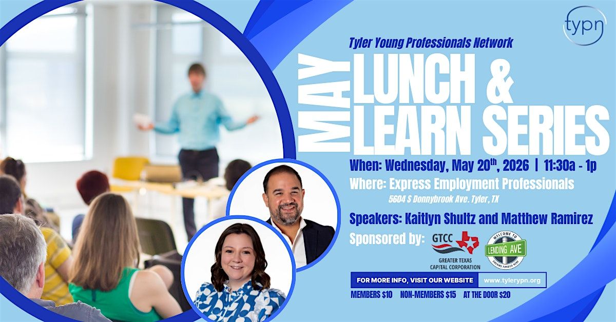 Join us for lunch and hear from two community leaders, Kaitlyn Shultz and Matthew Ramirez, who've built their careers along the path of community impact. For National Small Business Month, we welcome two speakers from organizations serving small businesses in our community: Greater Texas Capital Corporation and Lending Avenue. They'll share their experiences as young professionals finding their direction in the community, and how that led to career opportunities and making lasting impact through their current careers. Sponsored by Greater Texas Capitol Corporation and Lending Avenue.