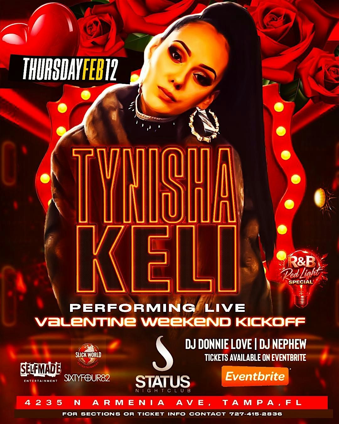 LADIES & GENTLEMEN, COME & WITNESS TYNISHA KELI AT THE BEST R&B NIGHT IN CENTRAL FLORIDA THURSDAY FEB 12th STATUS NIGHTCLUB TAMPA