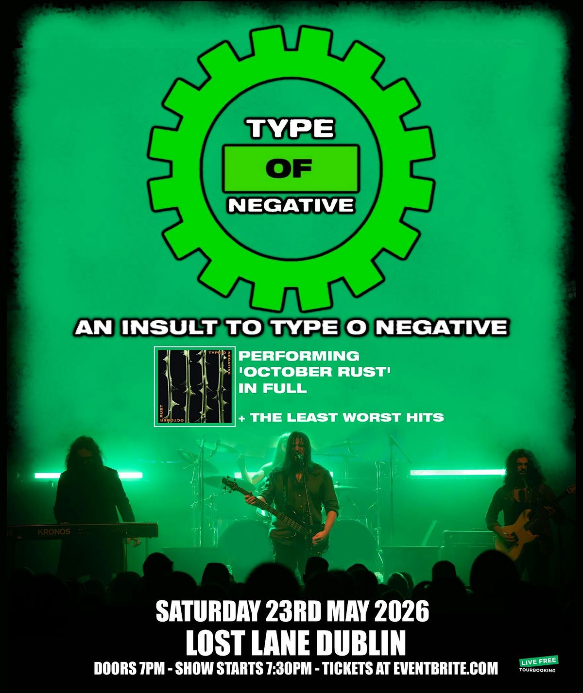 Type Of Negative - Type O Negative Tribute band at Lost Lane Dublin - Saturday 23rd May 2026 - Doors 7pm - Show starts 7:30pm