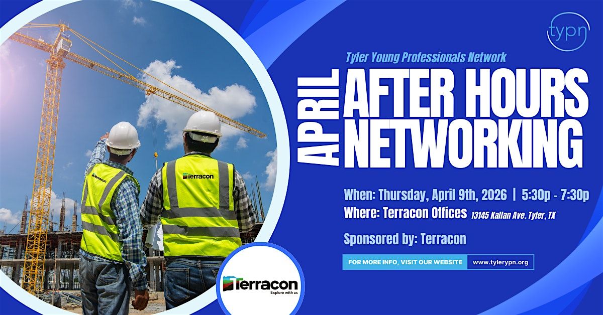 Join us for our April after-hours and networking event at Terracon with East Texas professionals, as well as architects, engineers, construction professionals, and supporting industries. This is a free event that encourages networking and collaboration across East Texas. Food and Drinks will be provided.