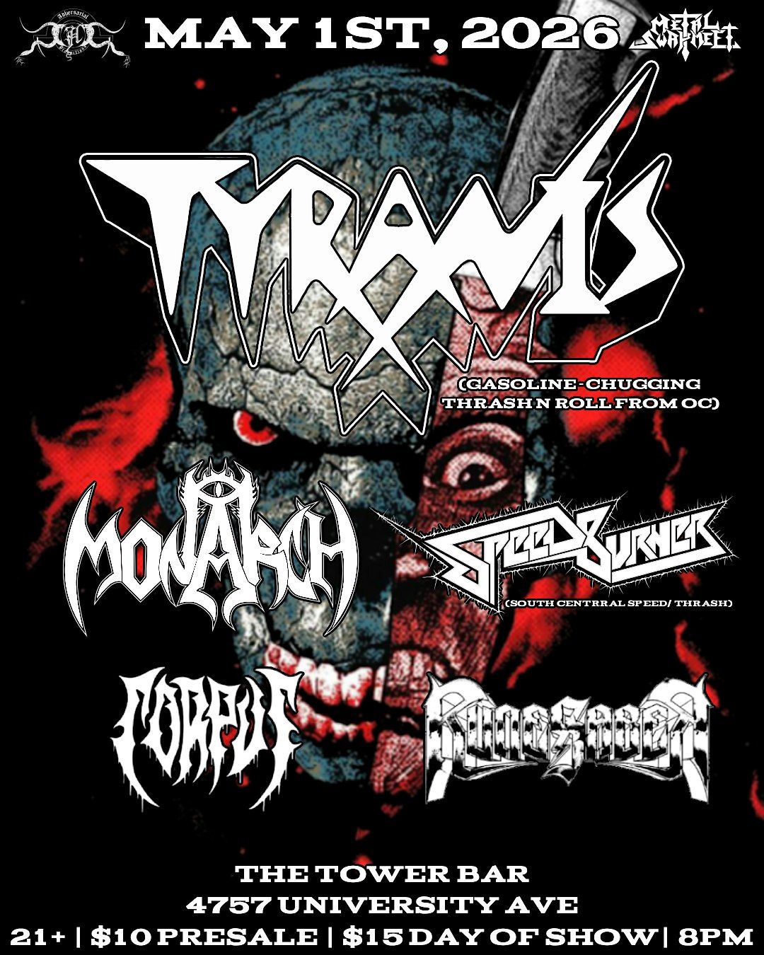Adversarial Prodcutions and Metal Swapmeet Present Tyranis, Monarch, Speedburner, Runesaber, Corpus Live at The Tower Bar
