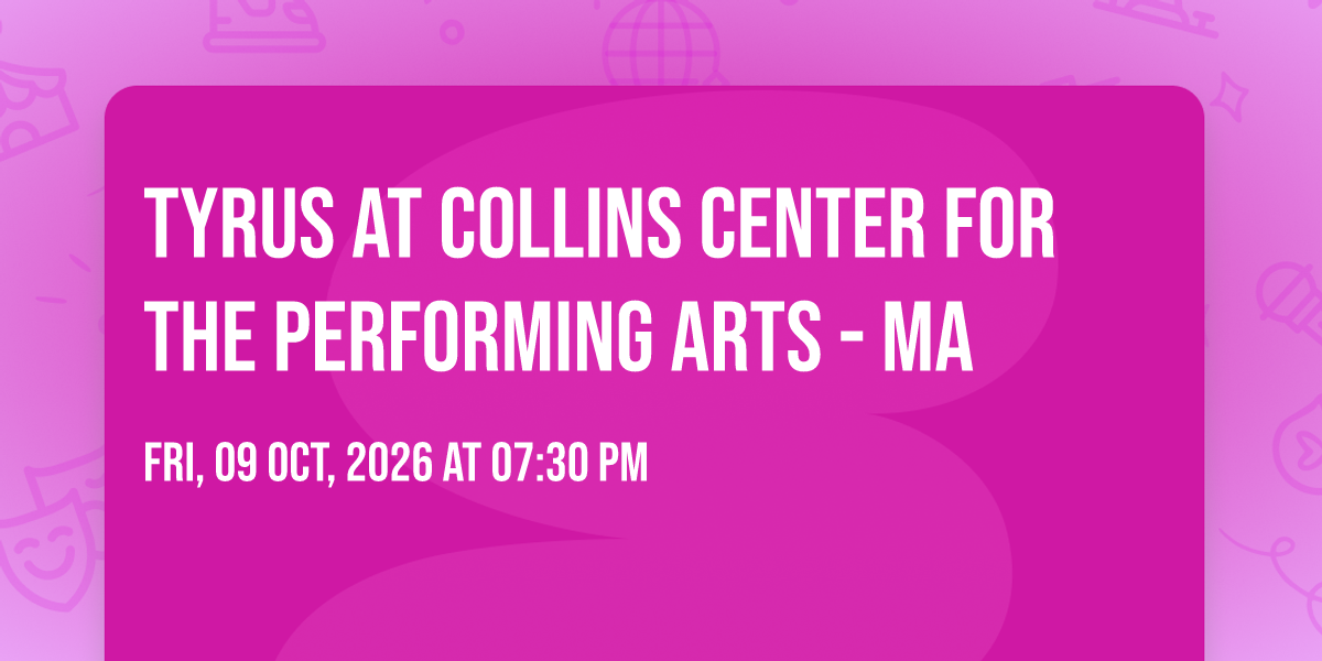 🌟 Step into a world of wonder at Tyrus at Collins Center for the Performing Arts - MA, where extraordinary moments await! 🏛️ Located at Collins Center for the Performing Arts - MA in dynamic Andover, MA, this event will become the talk of the town. 📅 Join us on October 9th, 2026 at 07:30 PM for a celebration that defies the ordinary. ✨ This curated experience brings together the best of entertainment, culture, and community spirit. Every detail has been thoughtfully planned to ensure an unforgettable experience for all our guests. 🎯 Take advantage of this opportunity to be part of something special. 🎊 Early registration is recommended as space is limited!