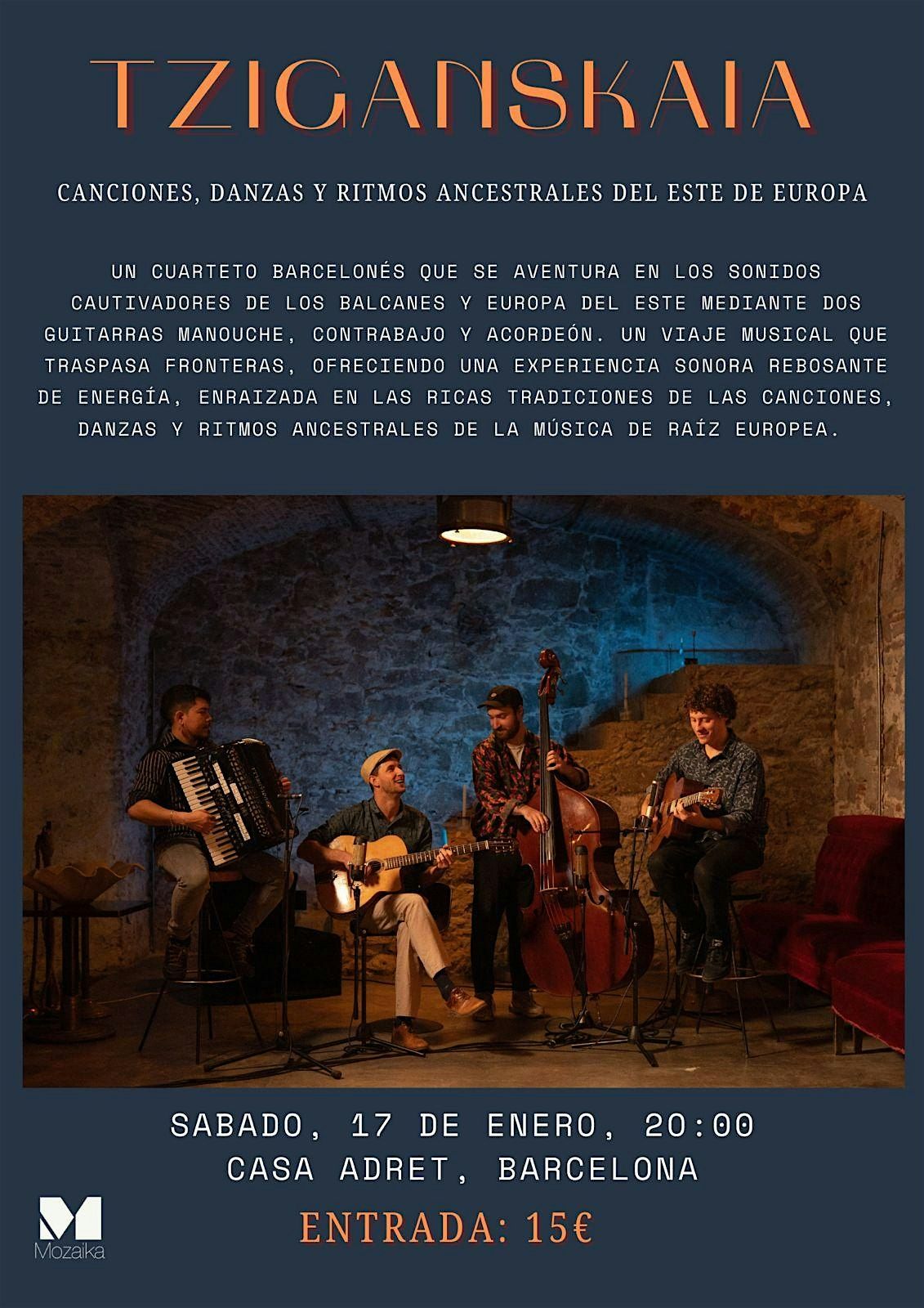 Casa Adret s’omple d’energiaamb Tziganskaia, un quartet barceloní que ens convida a un viatge musical pels Balcans i l’Europa de l'Est