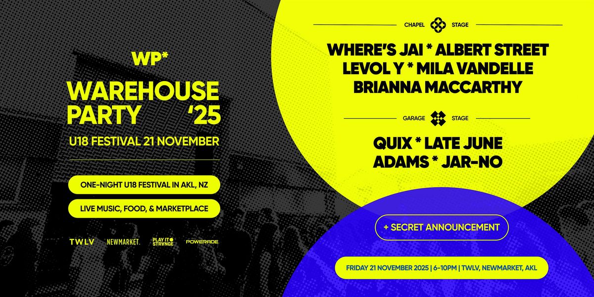 Get ready for an unforgettable night at Warehouse Party 2025 — New Zealand's biggest under-18 music festival!