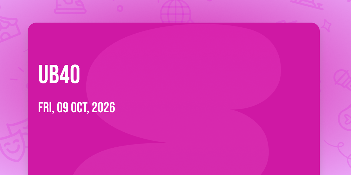 📍 Location: 41.8759, -87.6252✨ Experience the magic of UB40, where moments become memories that last a lifetime! 🏛️ The iconic The Auditorium Theatre - Chicago in Chicago, IL sets the perfect stage for an unforgettable celebration on October 9th, 2026 at 01:00 AM. 🌟 It's been a curated experience that brings together the best of entertainment and innovation, creating an atmosphere of wonder and excitement. From the moment you arrive, you'll be immersed in a world where the ordinary transforms into the extraordinary. 🎊 Book early to secure your place in what promises to be an event that will be talked about for years to come!