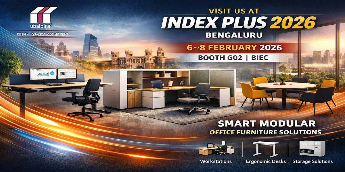 Ubalpine, a leading , is participating in Index Plus Exhibition 2026 at BIEC, Bengaluru, from 6–8 February 2026. Visit Booth G02 to explore our innovative range of modular office furniture solutions, including ergonomic workstations, height-adjustable tables, office cabins, and storage systems designed for modern workspaces.