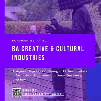 More information about UCD's BA in Creative & Cultural Industries can be found here: https://www.ucd.ie/courses/ba-creative-and-cultural-industries