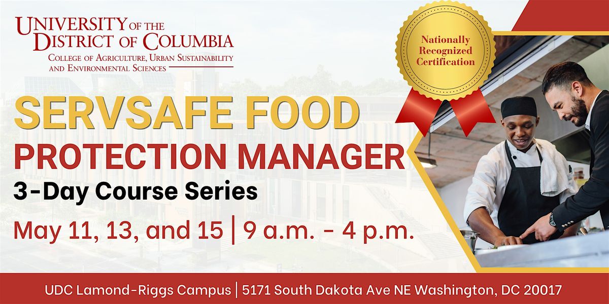 The Food Protection Manager certification is more widely recognized in federal, state, and local jurisdictions than any other food safety certification. The UDC ServSafe 3-Day course series will help food service managers enforce critical food safety practices in establishments, with every meal served. The UDC ServSafe Food Protection Manager course ensures that you: