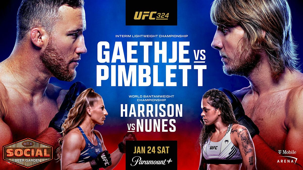 Welcome fight fans! Get ready for an action-packed night at UFC 324: Gaethje vs Pimblett happening at Social Beer Garden HTX on January 24, 2026 at 7:00 PM (Central Time). Witness the clash of these two titans in the octagon! Don't miss out on the adrenaline, cheers, and excitement. Mark your calendars and get your crew together for a night you won't forget!