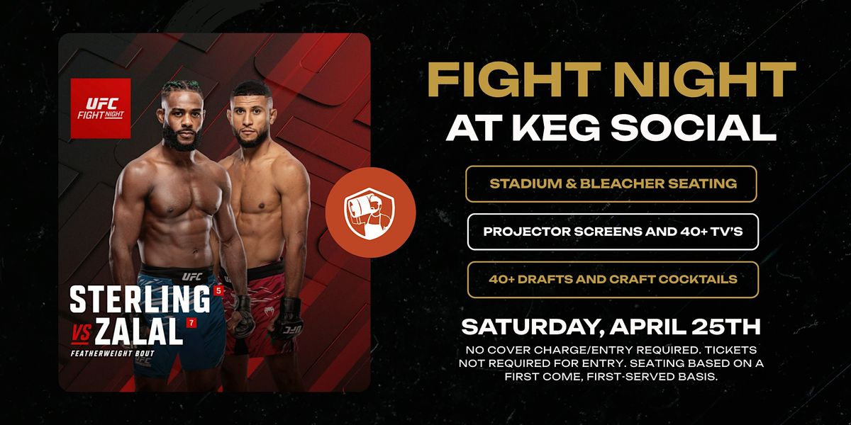 Catch UFC Fight Night: Sterling vs. Zalal at Keg Social—your go-to spot for a high-energy watch party with the full crowd experience.