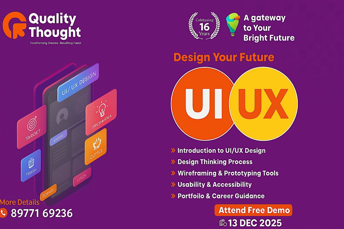 Welcome to FREE DEMO On 13 DEC 2025! Join us at on January 19, 2026 at 10:00 AM (Asia/Kolkata) for an exciting session. Whether you're new to UI/UX or looking to enhance your skills, this demo is perfect for you. Come learn about the latest trends and tools in the industry. Don't miss out on this opportunity to take your design skills to the next level. See you there!