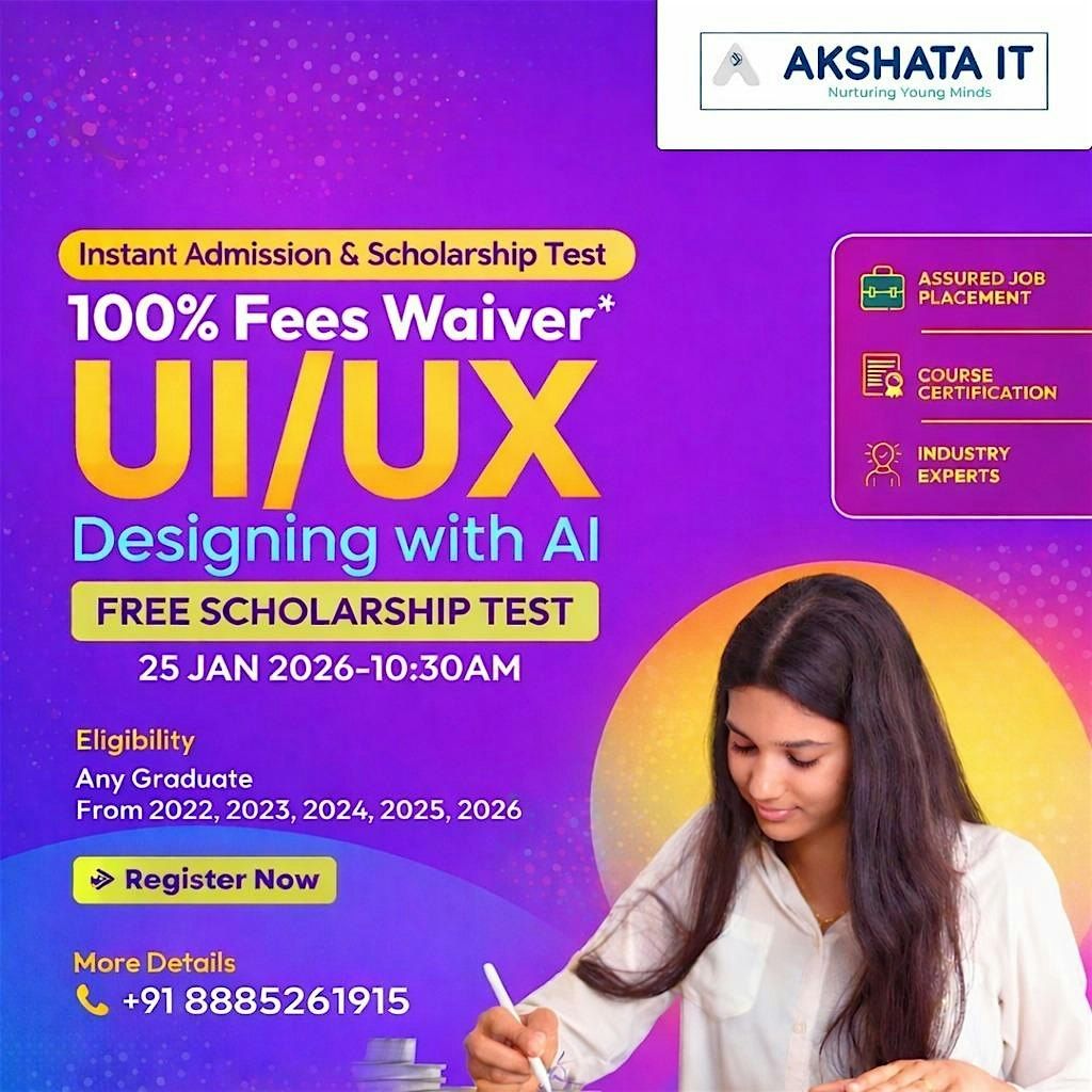 UI/UX Designing with AI course with an instant admission and free scholarship test, including up to a 100% fee waiver.