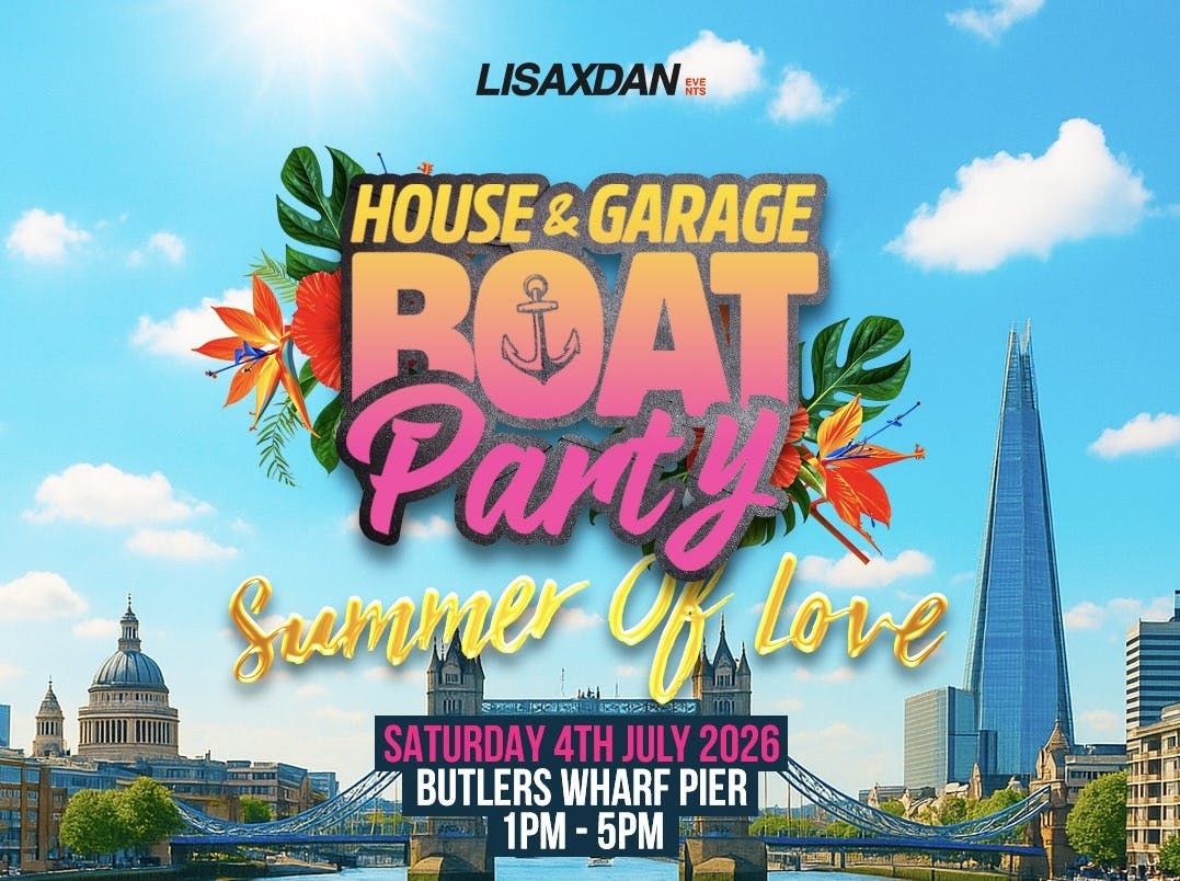 The Iconic HOUSE & GARAGE BOAT PARTY is Back — and Bigger Than Ever!GENERAL TICKETS GO ON SALE ON MARCH 1STWe Set sail on the largest vessel on the Thames for our unforgettable Sunmer Boat Party on Saturday, 4th July 2026.We’re taking over our stunning new home, The Dixie Queen — featuring two outdoor decks, walk around balcony, two luxurious decks, a massive dance floor and stage, and a state-of-the-art sound and lighting system that will blow you away.