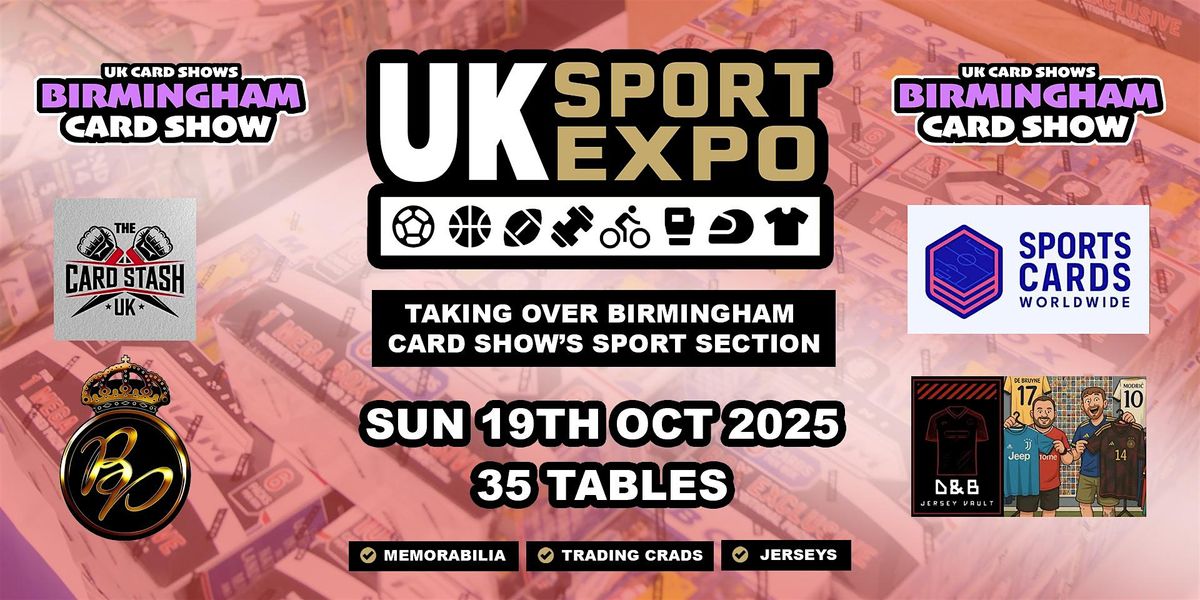 UK Sport Expo will be bringing 35 tables of sport to the Birmingham Card Show. There will be a mix of trading cards, memorabilia and jerseys available for guests. Tickets will also allow admission to the Birmingham Card Show which will feature 150+ tables of TCG products.