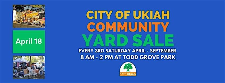 The City of Ukiah Community Yard Sale will be held around the perimeter of Todd Grove Park on Saturday, April 18th from 8 am - 2 pm.