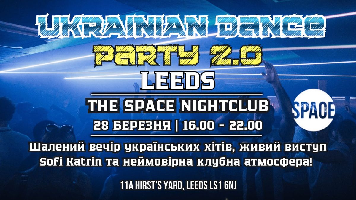 Запрошуємо на Ukrainian Dance Party 2.0 в самому серці Лідса! 🔥28 березня клуб Space знову наповниться українськими хітами, шаленою енергією та атмосферою справжньої танцювальної ночі 💙💛
