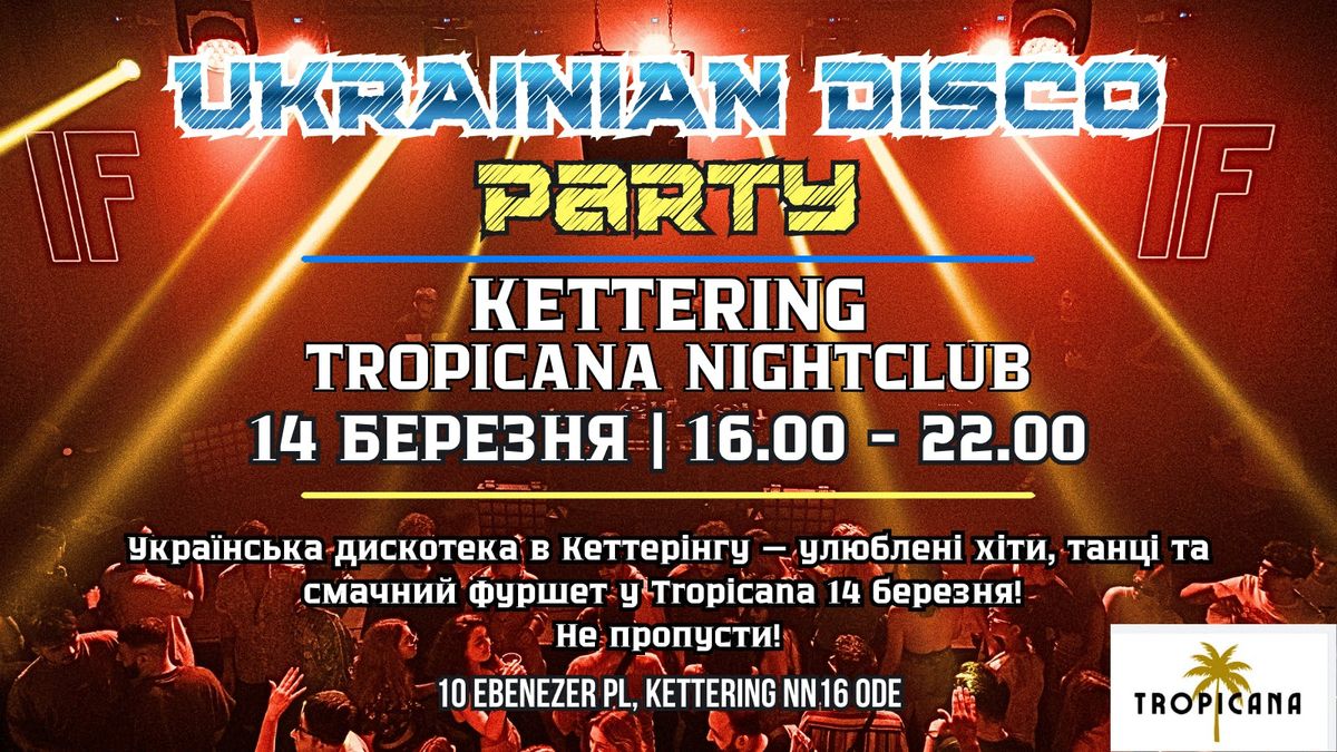 Запрошуємо на яскраву українську дискотеку від Zabava UK в самому серці Кеттерінгу!14 березня клуб Tropicana наповниться українськими хітами, енергією та атмосферою справжньої вечірки 💙💛