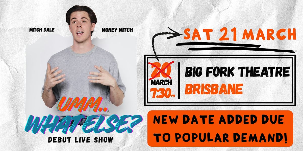 Mitch Dale aka Money Mitch brings his beloved Aussie storytelling to the stage for the first time with his debut show Umm.. What Else! His fast paced, dry humour that has garnered millions of views online provides the perfect foundation for a night of hilarious tales, and some outrageous one liners. High energy, big laughs, and as unfiltered as it gets.