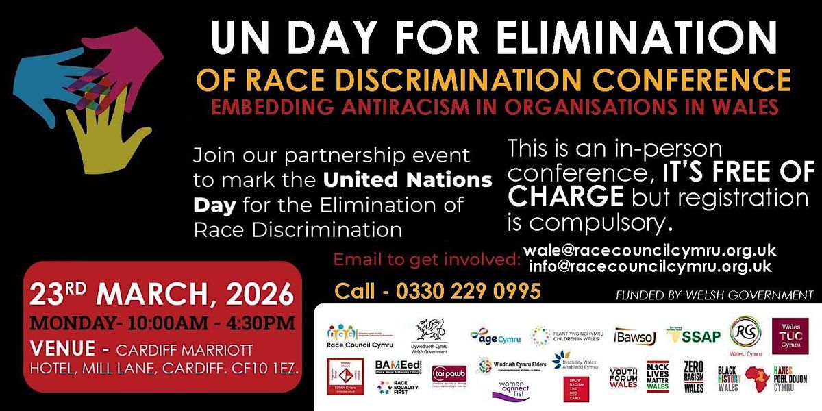Join Race Council Cymru for an in-person conference marking the United Nations Day for the Elimination of Racial Discrimination.