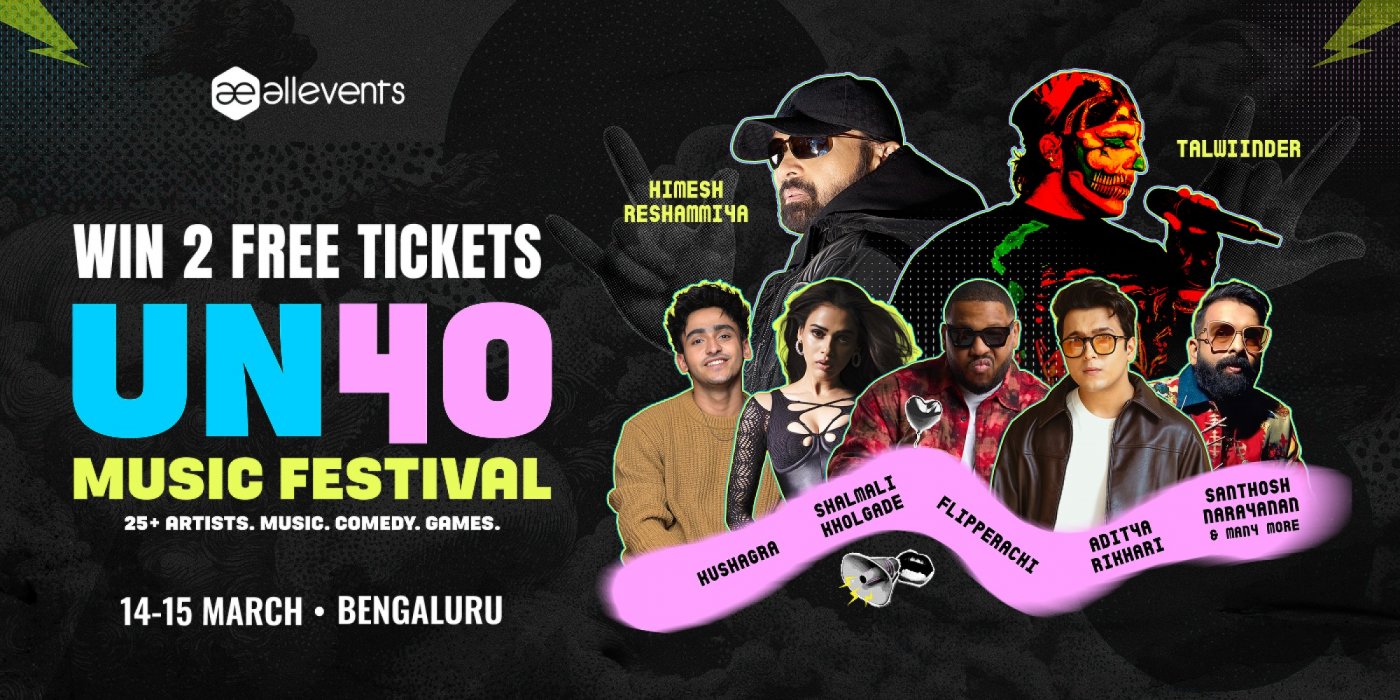 UN40 Music & Beyond is a two-day festival for the loud, the unapologetic, and the playlist obsessed. Featuring genres like pop, indie, hip-hop, EDM, rock, and Bollywood, the lineup includes artists such as Talwinder, Himesh Reshammiya, Aditya Rikhari, Kushagra, Paal Dabba, and Santhosh Narayanan. The festival also offers top-tier comedy performances by Harsh Gujral and others. With two stages, multiple supporting acts, and back-to-back performances, the event promises big-scale production and immersive moments.