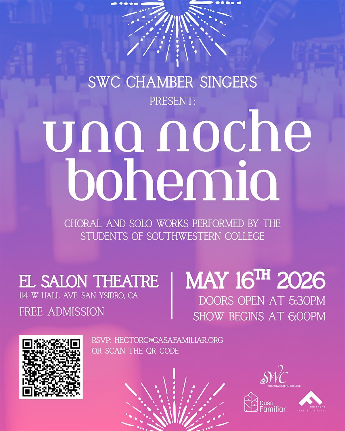 Parking: Since El Salón is located between resident parking lots, we ask all attendees to park on the street or use public transportation. The nearest open public parking lot is located at 125 E Park Ave, San Ysidro, CA 92173