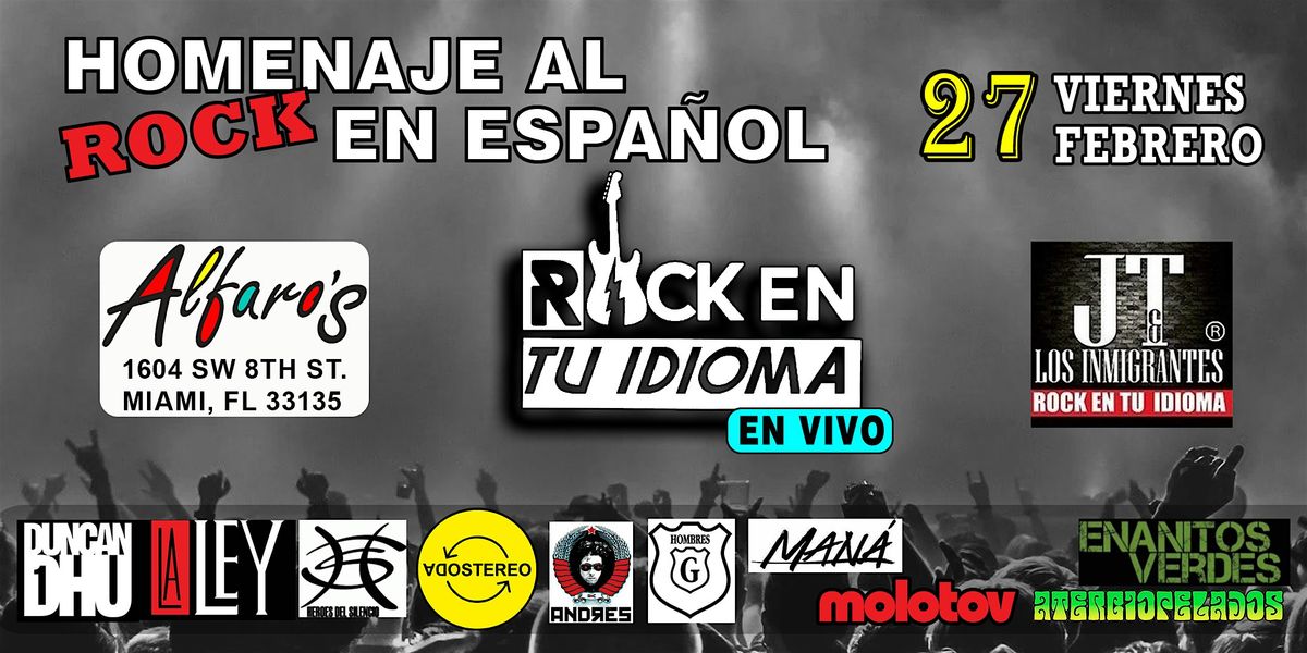 Una Noche de ROCK EN TU IDIOMA en Calle Ocho. La banda tocará éxitos de Soda Stereo, Maná, Enanitos Verdes, La Ley, Hombres G, Los Prisioneros, La Unión, Fito Páez, Andrés Calamaro, Héroes Del Silencio, Rata Blanca, Auténticos Decadentes, Duncan Dhu, Miguel Mateos, Aterciopelados, Charly García, Jarabe de Palo, Pedro Suárez-Vértiz, Molotov, Los Rodríguez.