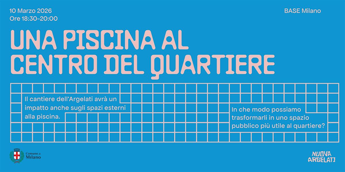 Questo terzo incontro pubblico riguarderà lo spazio pubblico antistante la struttura, anch’esso perimetrato nell’oggetto della riqualificazione di Piscina Argelati. Il confronto avrà l’obiettivo di raccogliere indicazioni utili a rafforzare la funzione pubblica dell’area circostante l'impianto natatorio, anche attraverso interventi di urbanistica tattica e micro-regolazioni della viabilità per migliorare l’accessibilità e sicurezza degli spazi esterni e delle aree adiacenti alla struttura.