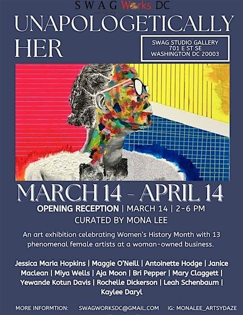 Artwork on Flyer by Jessica Maria Hopkins. 13 Artist participating in this magnificent event are Maggie O'Neill, Antionette Hodges, Janice MacLean, Mia Wells, Aja Moon, Bri Pippen, Mary Claggett, Yewande Kotum Davis, Rochelle Dickerson, Leah Schenbaum, Kaylee Daryl, D.Huges the Creative and Jessica Maria Hopkins.