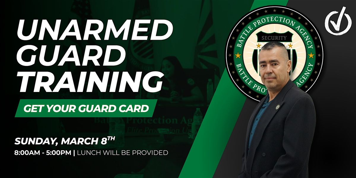 - 8 hours of comprehensive unarmed guard training