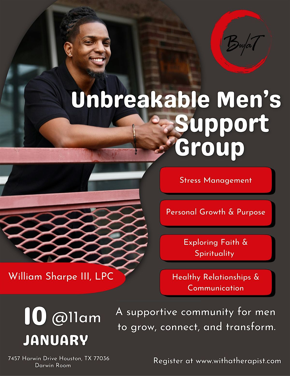Come join us for a powerful gathering of real life men discussing real life matters! At this meeting, we will better understand our anger and how to tame it! Our Unbreakable Men's gathering will inspire and empower you to overcome any challenge life throws your way. Facilitated by a licensed professional, participants will be free to unpack life, family, work, and everything else in between. Learn strategies and approaches to managing some of life's most difficult situations. Don't miss out on this chance to connect and grow into greater with like-minded men! See you at 7457 Harwin Dr.!
