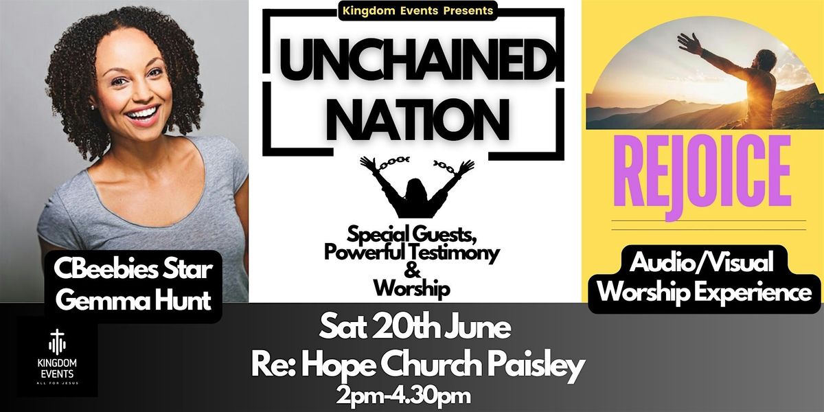 An afternoon of Powerful Christian Testimony, Impactful Preaching and Uplifting Worship. With Special Guest, star of Cbeebies and CBBC Gemma Hunt. Gemma will share her personal journey of faith, stories from life on screen, and what following Jesus means to her today. There is also a Live set from the unique Audio Visual Worship Experience called REJOICE!