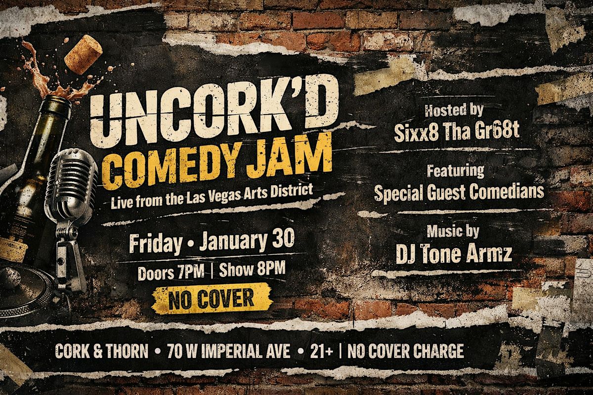 Welcome to UNCORKD COMEDY JAM at Cork and Thorn! Get ready for a night filled with laughter and good vibes. Join us on March 1, 2026 at 10:00 AM (Pacific Time) for a comedy show like no other. Gather your friends and come enjoy a hilarious lineup of comedians ready to tickle your funny bone. Don't miss out on this unforgettable evening of comedy and fun!