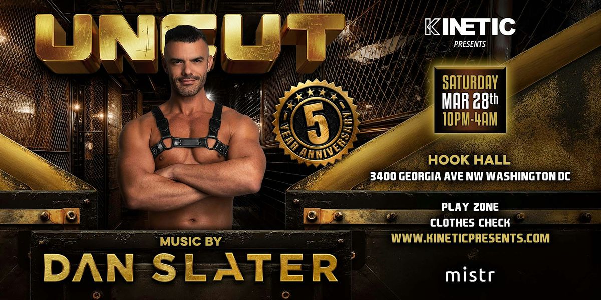 UNCUT celebrates half a decade as DC’s most risqué night with a legendary lineup to match the milestone. International DJ icon Dan Slater takes the decks for a night of deep, driving beats that hit harder and last longer than ever before. With our signature Play Zone and Clothes Check, UNCUT’s Anniversary is the night where the energy of our last 5 years shines through and sets the tone for what’s to come.