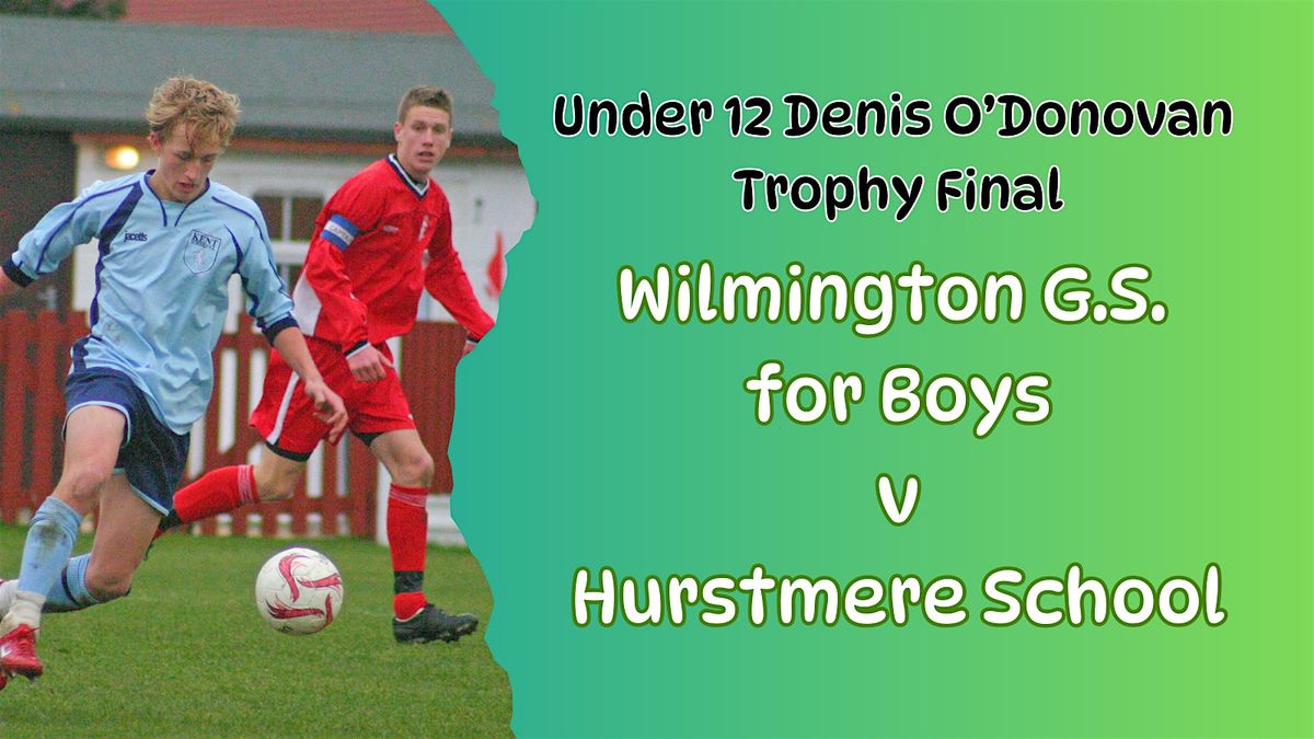 Wilmington GS for Boys and Hurstmere School will face each other in this season’s Under 12 Denis O’Donovan Trophy final at Maidstone United F.C. on Friday 27 February, kicking off at 8.30 pm.