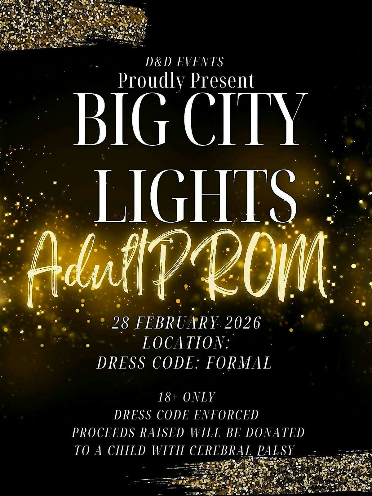 Join us Under the Big City Lights for an unforgettable Adult Prom Fundraiser—a night filled with dancing, laughing, and endless fun for guests 18+ only. Dress to impress in your best formal attire as we come together to support Emma, a courageous little girl living with cerebral palsy.
